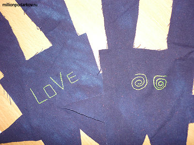 Вышиваем на детали передней части глаза, а на детали задней части слово love.