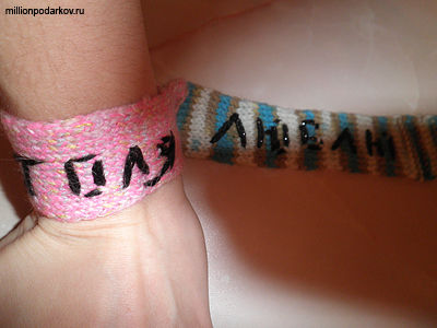 Ко дню всех влюбленных отличным подарком будет поделка, сделанная своими руками. Можно связать оригинальный браслет, который позволит не расцепать рук долгое время.
