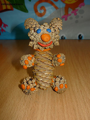 Поделка медведь из шишек