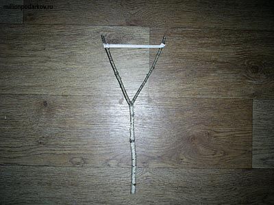 Вначале очистите ветку так, чтобы на ней не осталось лишних палочек и зазубрин. Подровняйте края «развилки». Сделать это можно острыми ножницами или ножом. Теперь возьмите бельевую резинку и прикрепите ее к двум веточка. Для этого просто привяжите концы резинки к веточкам или пришейте их. В итоге у Вас получится замечательная рогатка, из которой так интересно пострелять маленькими камешками или шариками.