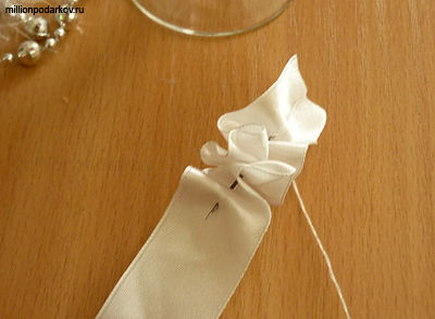 С помощью контактного клея приклейте жемчуг к атласной ленте.