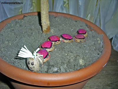 Сегодня мы вместе с детьми будем делать такие поделки объемные, как изделия из природного материала. Остановимся на такой вот забавной гусенице. Ее делала 6-тилетняя девочка.