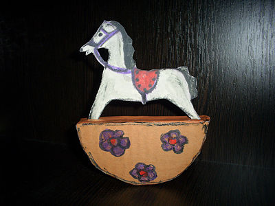 Теперь разукрашиваем лошадку акварелью, гуашью или акварельными карандашами. Приклеиваем ее в щель между склеенными полукругами. Доклеиваем сверху две полоски бумаги – получается вот такая замечательная игрушка.
