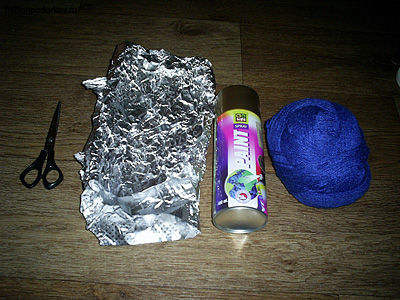 Для изготовления шарика нам понадобится фольга, нитки и аэрозольная золотая краска.