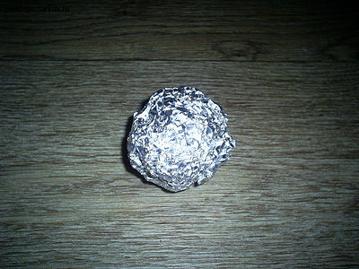 Отрываем кусок фольги и катаем из него шарик. Добавляя еще слои фольги, наращиваем его диаметр до нужного размера.