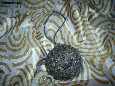 Для нашей поделки понадобится шaр из фильги и нитки. А делать мы будем симпатичную елочную игрушку.