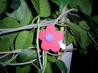 С помощью пластилина или клея прикрепите цветочек к прищепке. Можно сделать множество таких веселых прищепок и развесить их кругов в саду. Дайте задания детям за определенное время найти все прищепки. Победитель получит приз!