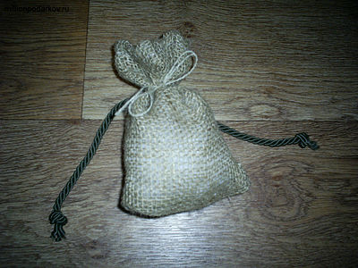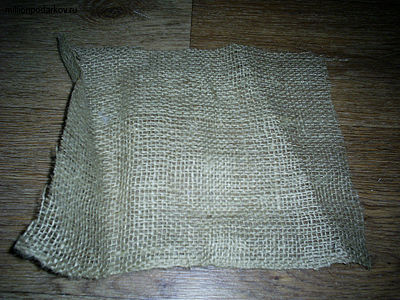 Из мешковины вырезаем прямоугольник. Это будет основа для тела домовенка.