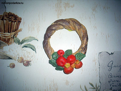 Поделка своими руками из соленого теста «Венок с фруктами и цветами»
