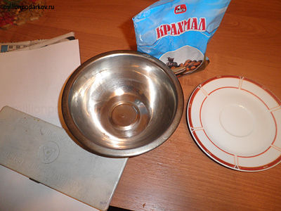 Для изготовления поделки тарелки из бумаги нам понадобится тарелка, которую мы будем обклеивать, старая газета. Чтобы придать цвет, воспользуемся гуашью и кисточкой. Клестер будем варить из картофельного крахмала в небольшом количестве воды.