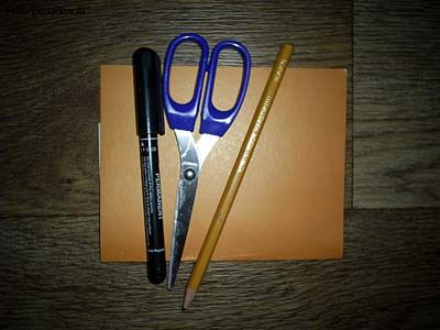 Для изготовления поделки подготовьте цветной картон, ножницы, карандаш и черный маркер.