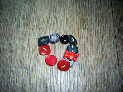 Итак, подбираем пуговицы по цвету и форме. Выбираем нужные бусинки. Комбинируя различные материалы, мы можем создать интересные изделия. Меряем кусочек резинки или эластичной тесемки так, чтобы она свободно обхватывала кисть. Теперь нам осталось лишь нанизать пуговицы и бусинки на резинку и закрепить ее, формируя браслет.