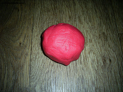 Делаем цветное соленое тесто. Для этого нам понадобится 3 части муки, 2 части мелкой соли и 1 часть воды. Смешаем воду с пищевым красителем нужного цвета и выльем ее в соленую муку, насыпанную горкой. Хорошо вымешиваем тесто. Важно достичь однородной окраски тестяной массы. Делаем тесто нужных нам цветов.
