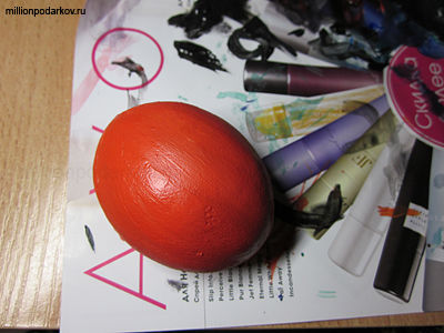 Лепим из теста яйцо, ставим его на 2 часа в духовку, при температуре 50 градусов.Затем вынимаем и остужаем.