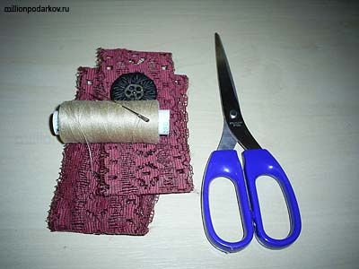 Для изготовления поделки подготовьте тесьму, пуговицу для сердцевины, нитки и иголку, ножницы.