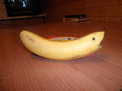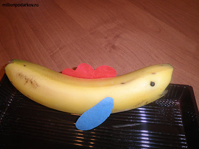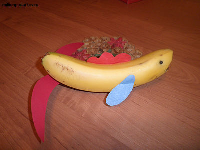 Поделки фрукты можно использовать для украшения праздничного стола. Предлагаю сделать вкусную рыбку из банана, которая очень понравится малышам.