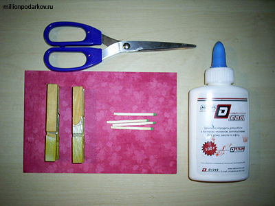Для изготовления поделки из бельевых прищепок Вам понадобятся деревянные прищепки, а также цветной картон, спички, клей ПВА, ножницы и краски (лучше всего акриловые, но можно и гуашевые).