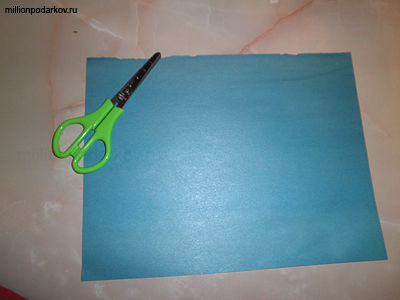 Чтобы сделать поделку из бумаги для пап своими руками нам подадобится лист формата А4 синей бумаги, лучше взять двухстороннюю, а так же линейка и ножницы.