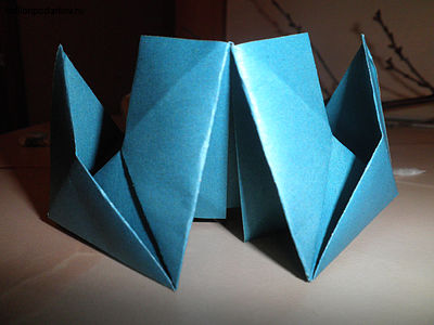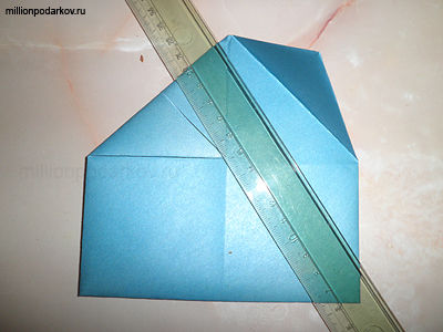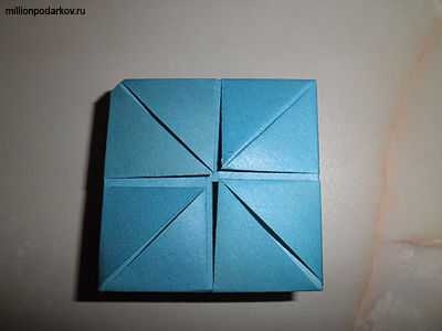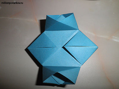 Складываем полученную фигуру пополам и расправляем еще два уголочка.
