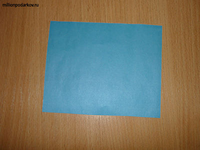 Вырезаем из листа бумаги голубого цвета небольшой прямоугольник. Он будет олицетворять пруд в котором живет наша русалка.