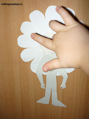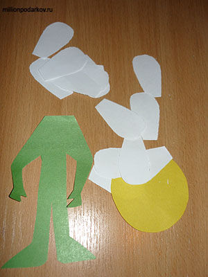Вырезаем из бумаги желтую серединку, лепесточки белого цвета и стебелёк в виде человечка.