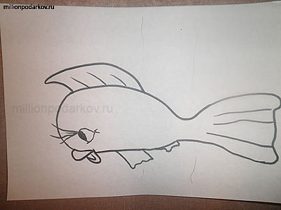 Рисуем на листе альбома черным маркером рыбку, которую и будем декорировать