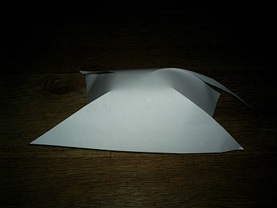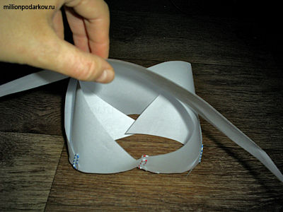 Затем подогнем вперед два задних угла и закрепим их.