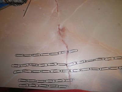 Полученные цепочки можно закрепить с помощью канцелярских скрепок на деревянный брусочек или использовать клей, например.