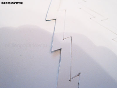 Канцелярским ножом аккуратно вырезаем шаблон так, чтобы он крепился к открытке только у основания.