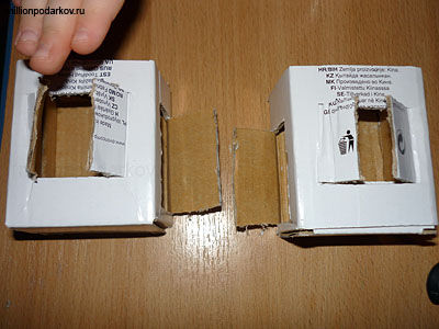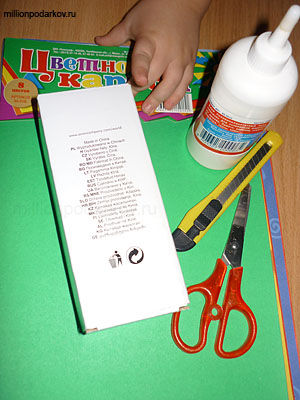 Канцелярским ножом разрезаем коробку на 2 части