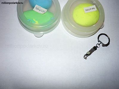 Катаем из пластика шарик, а затем закатываем конец цепочки от брелка в пластик.
