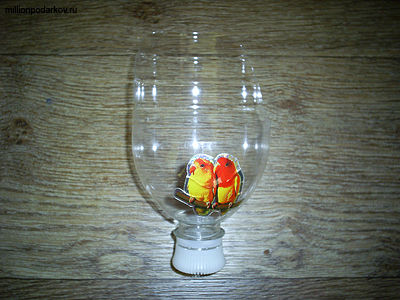 Из отрезанного горлышка бутылки делаем савок. Для этого отрезаем часть сверху так как, показано на фото, закругляем края, украшаем наклейками.