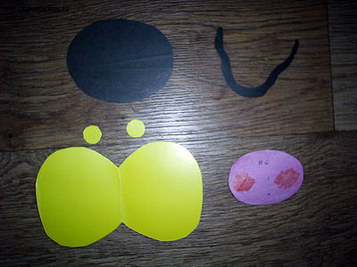Из цветного картона и бумаги вырезаем элементы будущей пчелки. Мордочку раскрашиваем акриловыми красками.