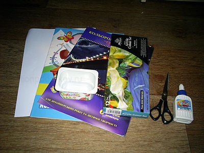 Для того чтобы сделать пчелку, приготовьте такие материалы, как пластиковая упаковка, цветной картон, цветная бумага, белая бумага, акриловые краски, ножницы и клей ПВА.