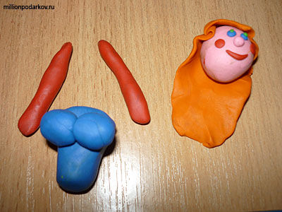 Лепим из пластилина голову, тело и руки для нашей будущей барышни.