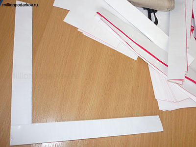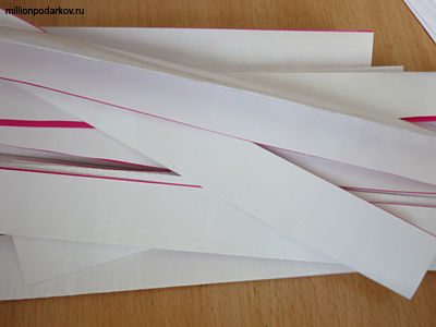 Сворачиваем бумагу в четверо. У нас должны получится длинные, узкие полоски.