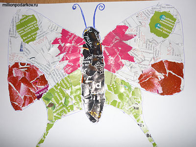 Поделки из порванной журнальной бумаги "Картинка-бабочка"