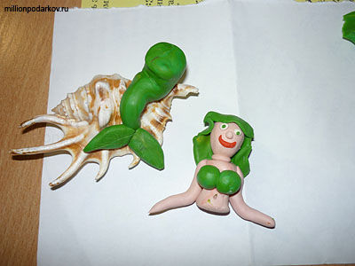 Поделки из ракушек и пластилина "Русалка"