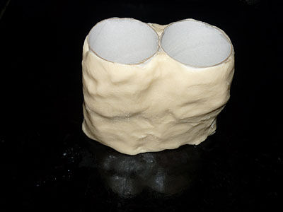 Соединяем рулончики вместе и обклеиваем их соленым тестом, придаём вид пенечка.