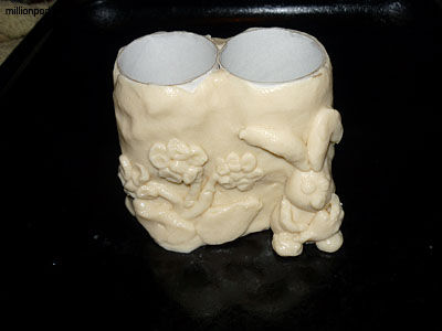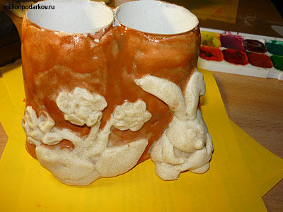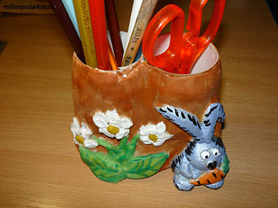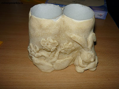 Сегодня я научу вас, как сделать поделки из рулонов туалетной бумаги подставка для карандашей. Правда, нам еще потребуется солёное тесто, краски, лучше акриловые, кисть и стакан с водой.