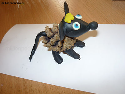 Поделки из шишек и пластилина "Собакамышь"