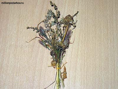 Из сухих трав сформировать букет и связать его веревочкой.