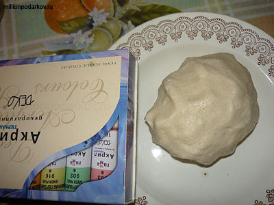 Для изготовления поделки из соленого теста лепка из соленого теста "Слон" вам потребуется готовое соленое тесто, акриловые краски, стакан с водой, кисть.