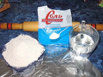 Замесить соленое тесто. В работе над "Снежинкой" нам нужны будут тонкие колбаски нужной длинны.