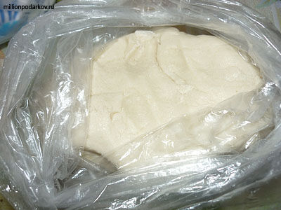 Добавляем немного воды и замешиваем тесто, как на пельмени. Затем кладем тесто в контейнер или в мешок и ставим в холодильник минимум на 2 часа. Только после этого можно будет лепить из теста. Если тесто получилось мало эластичным вы можете, добавить в него ложку крема для рук и тесто станет более податливым.