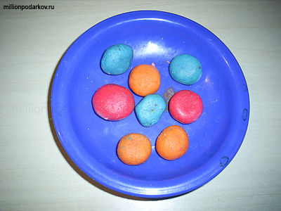 Теперь делаем из теста разноцветные шарики – конфетки.