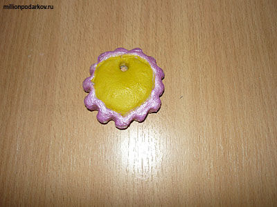 Пишем имя. Ждем пока краска высохнет и вдеваем в отверстие нитку. Изготовление поделки из солёного теста бесплатно "Подвеска с именем" законченно.