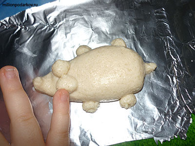 Лепим из теста ёжика. Объясните ребенку, что необходимо сделать.