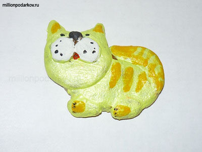 Поделки из солёного теста "Желтый кот на холодильник"