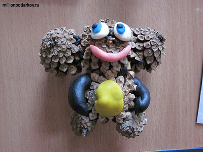 Поделки из сосновых шишек "Чебурашка"